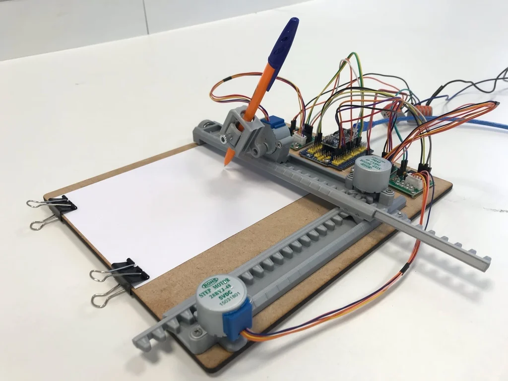 Una oportunidad magnifica para fabricar y llevarte un mini-plotter para casa. Un plotter consiste en tres ejes o barras desplazadas por motores que trazan un dibujo, en este caso, sobre un papel. Es una buena base para entender como funciona el G-Code y las máquinas por control numérico. Te pedimos que te apuntes con tiempo, ya que necesitamos imprimir las piezas y saber cuantos váis a ser. Si queréis podéis imprimir las piezas con vuestro filamento, os dejamos por aquí el enlace para descargarlas, id al fablab de Merida a hacer las piezas y os ayudaremos a ponerlas. 🙂